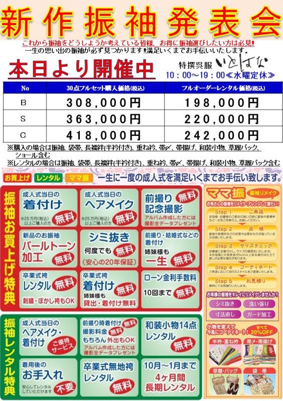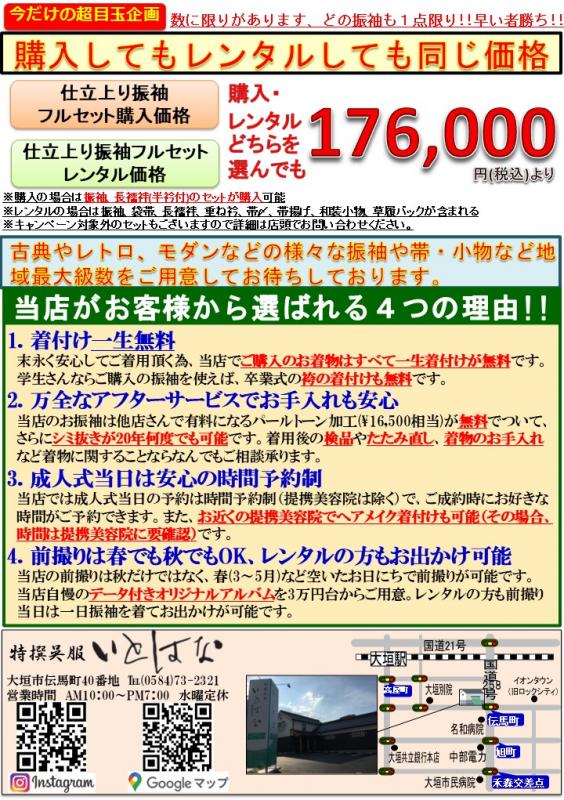 当店の目玉でもある購入してもレンタルしても同じ価格の振袖セットは、